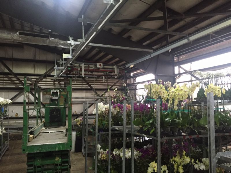 The installation consists of the re-use of the shipping crane by mounting it to the roof of the head house and extending it. We are also installing a second layer in the greenhouse between the head house and the production greenhouse. This second layer will return stacks of 5 empty benches to the production area. In the production area we have made a second layer to the production crane.
